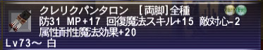 防30 神聖魔法スキル+5 弱体魔法スキル+5 魔法命中率+3 ヘイスト+2% Lv75~ 白黒赤召青